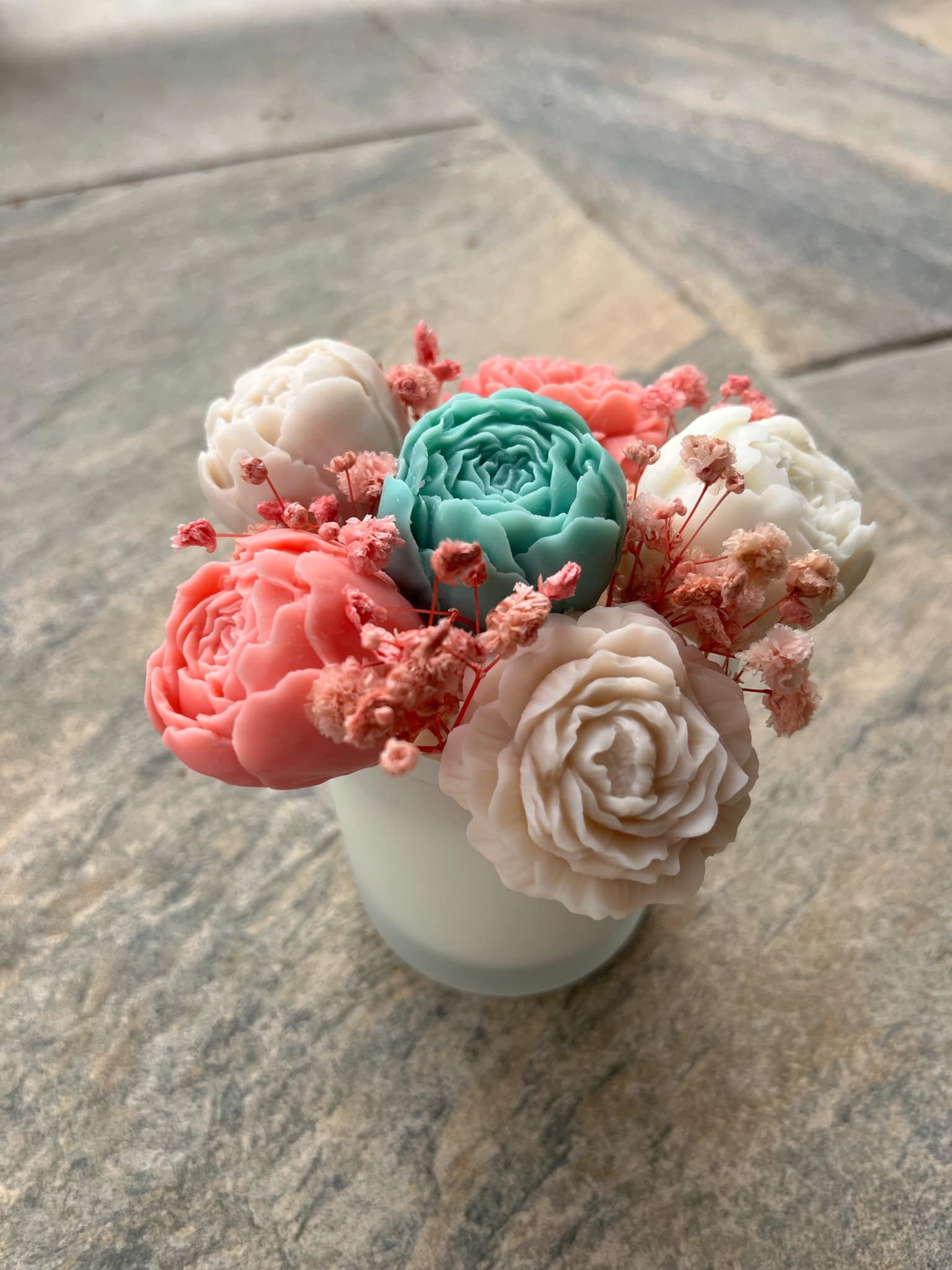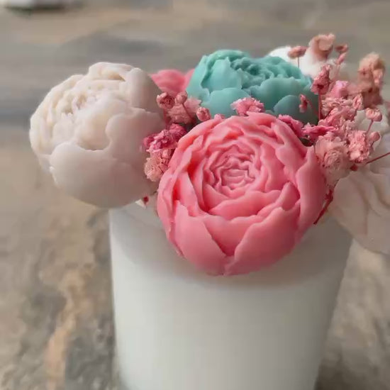 Printemps Éternel 🌷 - Bougie Fleurie en Pivoines | Yab Création